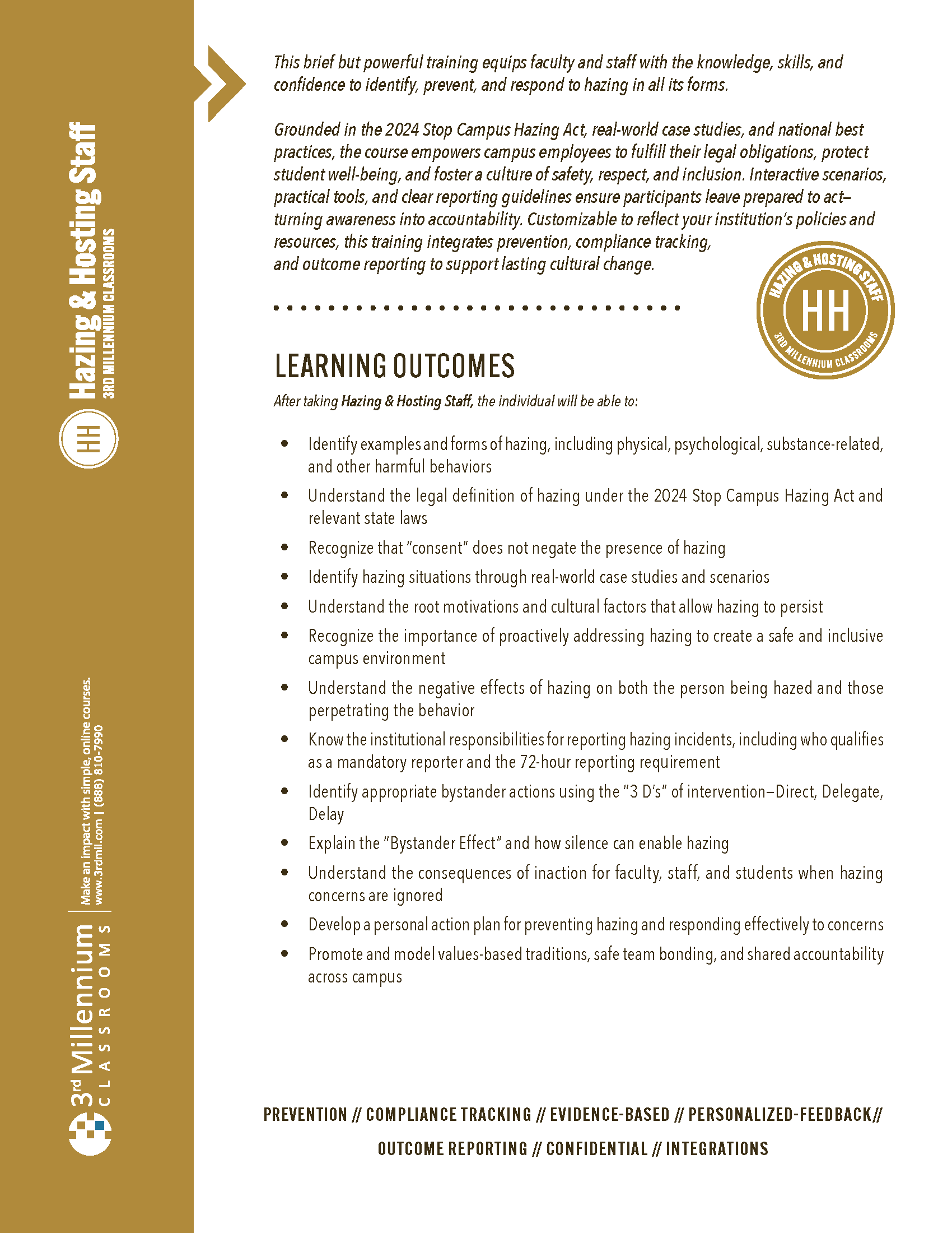 Download this free PDF of our one-page description of Hazing & Hosting to learn more about the course’s learning outcomes, features, and how it can be customized for your institution.