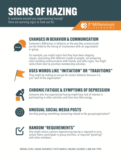 Some signs of hazing include: